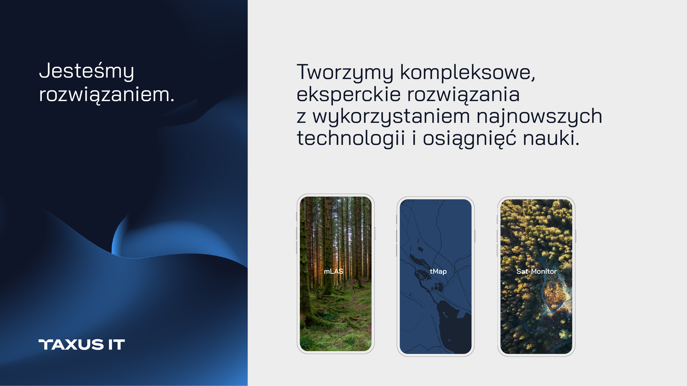Firma Taxus IT od ponad 30 lat dostarcza kompleksowe rozwiązania technologiczne wspierające zarządzanie zasobami. Jej specjalnością jest opracowywanie narzędzi terenowych, obejmujących m.in. monitorowanie zasobów leśnych, tworzenie zaawansowanych modułów inwentaryzacyjnych oraz analizę danych satelitarnych i informacji pozyskiwanych z dronów.